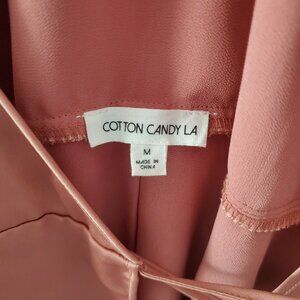 Satin-type fabric wrap dress by Cotton Candy LA. Its a pink/mauve color. Lined with a half slip as pictured. Comfortable. Size medium.