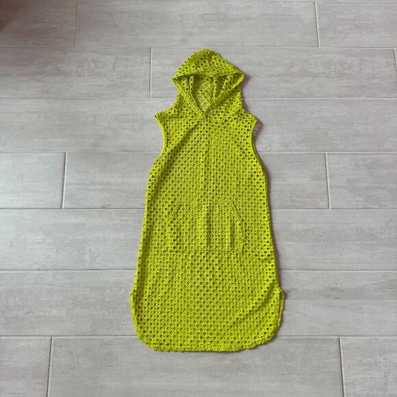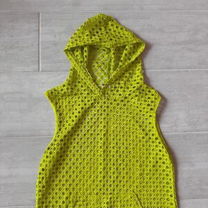Cotton Candy Neon Green Cover Up Hoodie Sleeveless beach Festival Alien Netted L