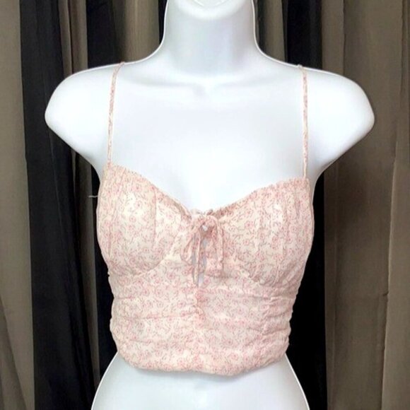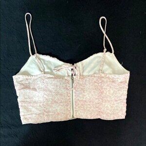 Cotton Candy Pink Bustier Tie Front Crop Top Cherry Blossom Pink Off White