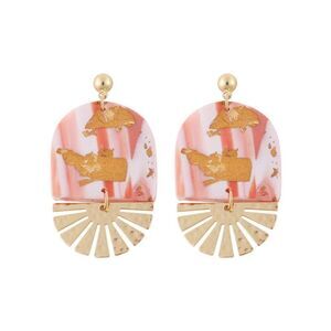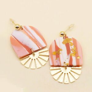 Cotton Candy Pink Marbled Gold Abstract Mixed Media Drop Earrings
