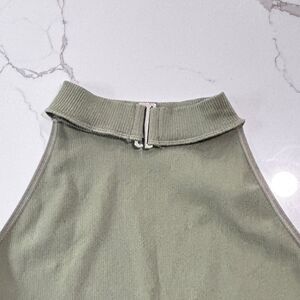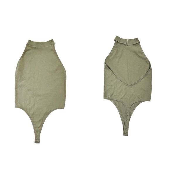 Cotton Candy Women’s Open Back Halter Army Green Sleeveless Ribbed Bodysuit M/L