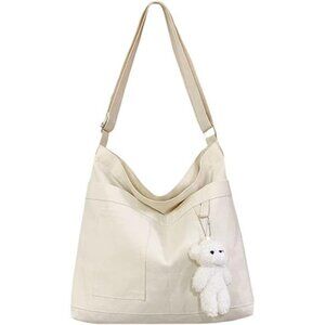 Cotton Canvas Tote Bag Large Shoulder Bag Hobo Crossbody Handbag with Pockets