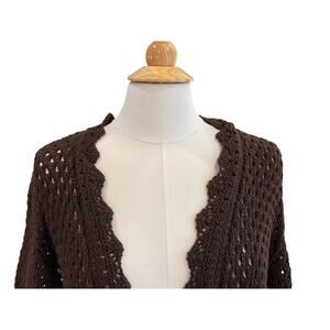 Boho. Bohemian. Festival. Hippie. Retro. Y2K. Crochet Open Knit. Chocolate Brown Cardigan. Layering Piece. Beachy. Coastal.