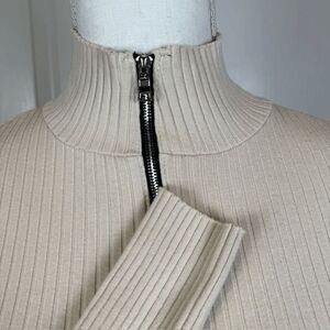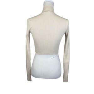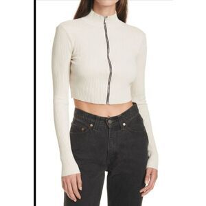 Cotton Citizen Ibiza Front Zip Crop Top Mock Neck Ivory Beige Stretch Size XS