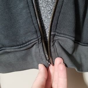 Cotton Citizen Mens Black Zip Up Hoodie Jacket in size Medium. Missing zipper see photo five. Super soft on the inside and in good condition. Solid black with some factory fading from dye process around the waistline, pockets, and sleeve cuffs. Size Medium. No Trades