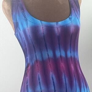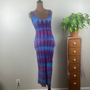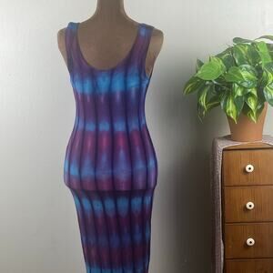 Cotton Citizen Purple and Blue Tie Dye Ribbed Knit Maxi Tank Dress Size Small