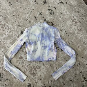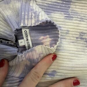 Cotton Citizen White and Purple Tie Dye Zip Mock Neck Top Size Large