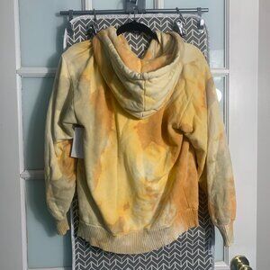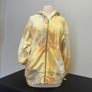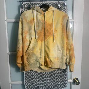 Make a statement in this bold zip up tie dye hoodie. This classic sweater features a drawstring hood, long sleeves, a kangaroo pocket and bold fierce tie dye print.