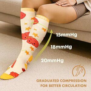 Effective 15-20 mmHg Graduated Compression: Designed with advanced knitting technology and a 15% spandex blend, these socks provide 15-20 mmHg graduated compression to support healthy blood circulation, reduce swelling, and relieve leg fatigue, ease swelling and pain during pregnancy. Perfect for long hours of standing, sitting, or traveling. It's not a medical product, for more concerns please reach out to your health care team