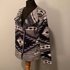 Cotton + Country Women's Full Zip Collared Knit Abstract Sweater
