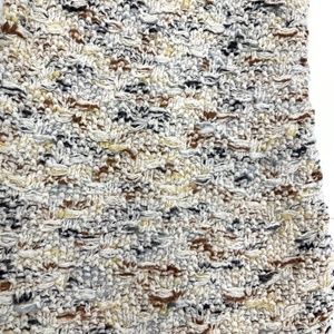 Color is hard to capture in photos! Off-white/cream with variegated blue, yellow, and brown woven through.