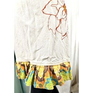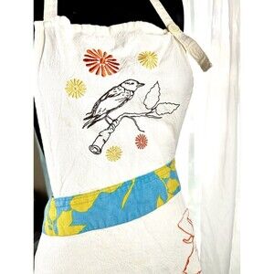 Cotton embroidered hummingbird and hibiscus apron and matching hand towel. Apron is standard in size and is in good used condition. Towel is 21.5 x 16.5.