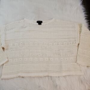 Gorgeous! Cotton Emporium Large Boat Neck Sweater with a Pointelle Knit Making it Cool and breathable. Long Sleeves, Pullover Style, Would look so cute layered over a cami or even as a swim top cover-up. See pictures for details and measurements. Available in Small and Medium in Separate listings. New without tags. MSRP $58