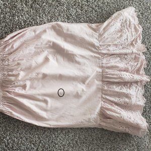 A-line silhouette. Scalloped hem. Midi length. Smocked bodice. Cotton. Dry clean. adjustable spaghetti straps. Ruffled trim square neckline dresses. cotton eyelet dress. Smocked Cotton Eyelet Dresses. Lined.