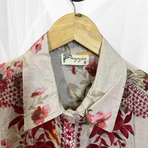 Cotton Floral Embroidered Button Front Blouse Small - Boho Cottagecore Top