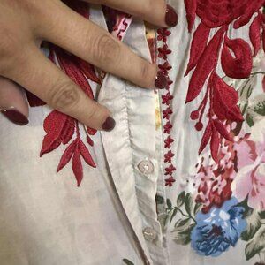 - Print: Multicolor floral with embroidery-style accents