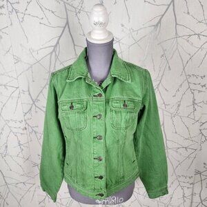 Cotton Ginny Green Rigid Denim Trucker Jacket