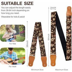 ๐ [Adjustable & Practical] - The guitar strap has a strong custom vintage-style rectangular brass buckles, fully adjustable from 38-64 inches, suitable for adults and children