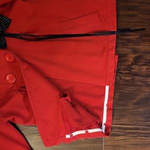 Stradivarius cotton jacket/cardigan in red with a pinned black polka dot bow. It has 2 pockets. Size small, in mint condition.
