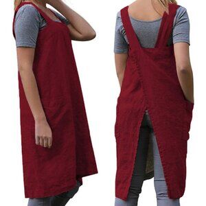 Cotton Linen Apron Cross Back Apron for Women with Big Pockets Square Pinafore D