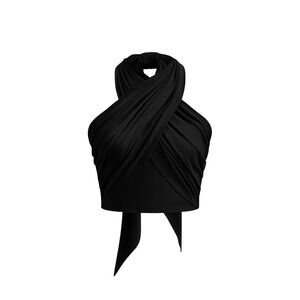 Keywords: halter top, black top, sleeveless top, tie back top, crop top, party top, going out top, womens top, summer top, sexy top, twisted top, Co:mmense, size L