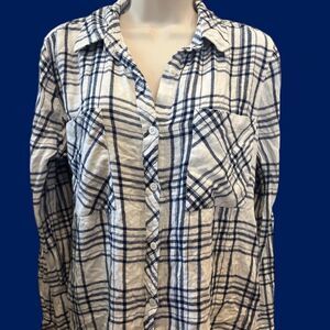 Cotton Navy & White BButton-up Plaid Women's Flannel
