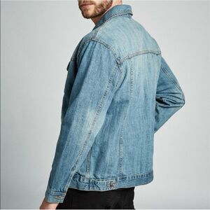 Look like a seasoned pro in this classic denim jacket. A true original fit, this waist length jacket features a single flat chest pocket with seam and stitch detail on side.