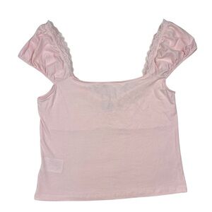 Cotton On Annie Lace Trim Tie Front Bow Baby Pink Tee Top - Size L
