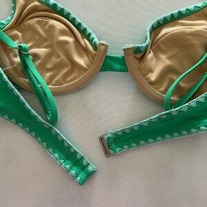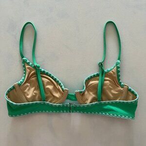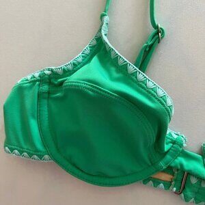 Cotton On Balconette Green/Blue Contrast Stitch Bra Bikini Top Size S