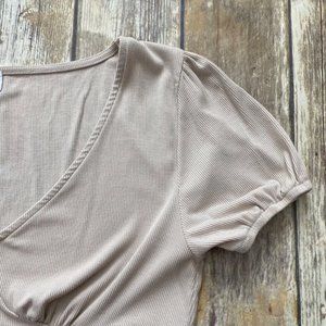 Cotton On Beige Ribbed Puff Sleeve Crop Top