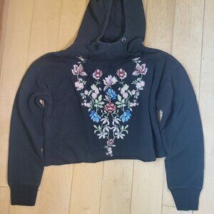 Cotton On hoodie, embroidered hoodie, floral sweatshirt, cropped hoodie women, black cropped sweater, cozy loungewear, trendy fall hoodie, casual streetwear, Cotton On medium hoodie, soft cotton top