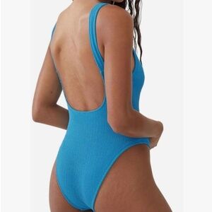 Cotton On Body Womens Low Back Bonnie Blue Crinkle One Piece Swimsuit