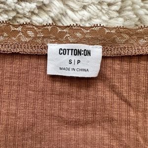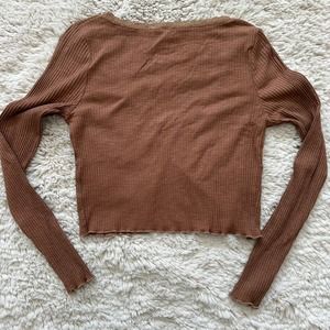 Cotton On Brown Long Sleeve Crop Top With Lace Trim Lining Women's Size Small