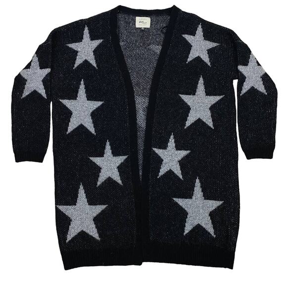 Cotton On Cardigan Sweater Knit Long Black Silver Star Patterned Women's Sz XS