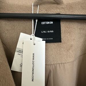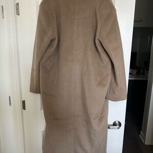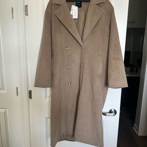 Stylish double-breasted coat in a classic tan color. Perfect for any occasion.