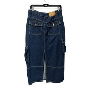 Cotton On Dark Wash Cargo Back Split Rigid Cotton Denim Maxi Skirt Womens US 8