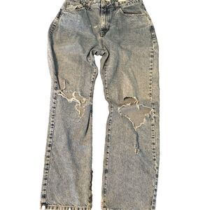 Cotton On Denim Jeans Women's 31" Waist SZ 8 Long Straight Leg Distressed Knees