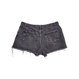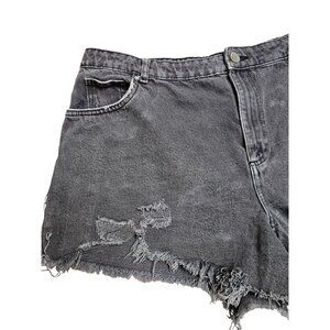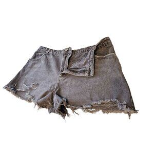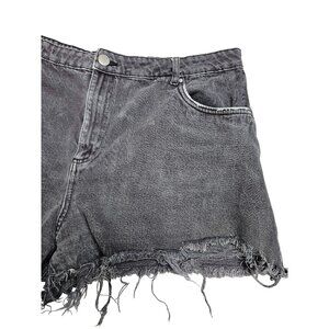 Cotton On Distressed Black Wash Denim Shorts Women Size 14 Frayed Hem High Rise