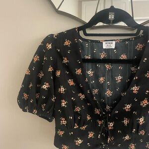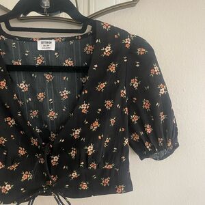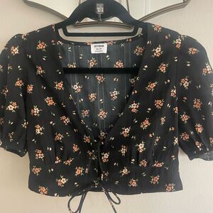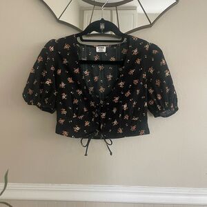 Cotton On Floral Open Tied Front Puff Short Sleeve Crop Top Size Small