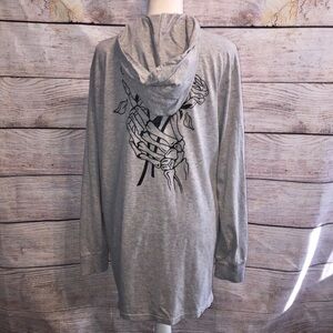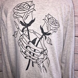 Cotton On Garments Grey Bad Company Hoodie with Roses and Skeleton Size XL