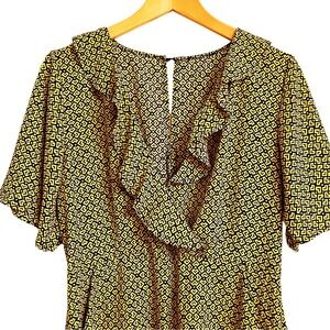 Cotton On Geometric Romper Black and Yellow Ruffled Neckline Pockets Size Medium