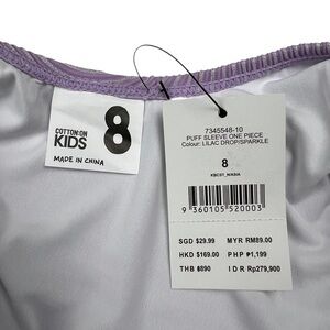 Cotton On Girls Puff Sleeve One Piece Swimsuit in Sparkly Purple - Size 8