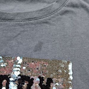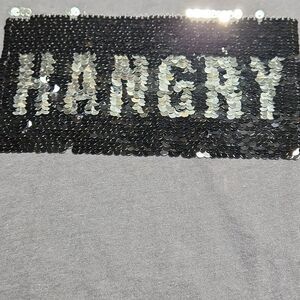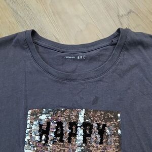 🔹️Cotton On Gray w/Sequined Happy Hangry Short Sleeve Top Medium