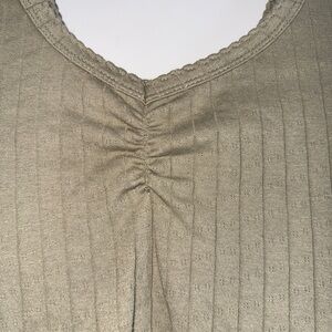 This chic green blouse from Cotton On features a ribbed texture and a flattering cropped silhouette. The ruched V-neckline adds a touch of elegance, while the fitted long sleeves ensure a sleek look. Perfect for pairing with high-waisted bottoms for a stylish ensemble.