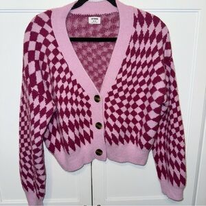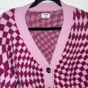 Cotton On Knit Cardigan Barbie Optical Splice Berry Sz Medium Checkered Academia