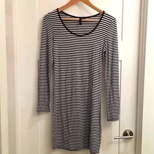 Blue and off-white striped knit dress from Cotton On. Scoop neck and long sleeves. The care tag has been removed. The material has some stretch.