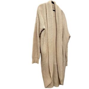 Cotton On Knit Wear Open Front Shawl Collar Longline Cardigan Sweater Beige Large