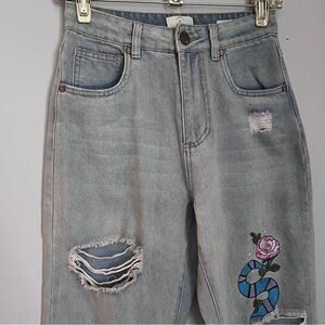 Cotton On Light Wash Straight Leg Relaxed High 90s Jeans Sz 4 Snake Embroidered