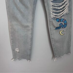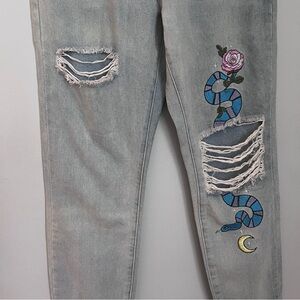 Cotton On high rise relaxed fit jeans in excellent pre-loved condition. Snake and moon embroidery.