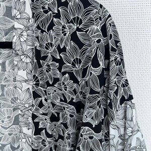 Chic and breezy long kimono duster by Cotton On in size M/L. Features a striking black and white floral print, open front design, and flowy oversized fit. Perfect for layering over casual outfits, swimwear, or festival looks. Lightweight fabric drapes beautifully for an effortless boho vibe. Versatile Career to Casual